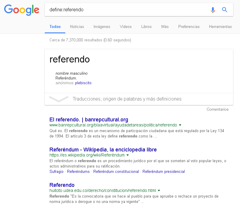 Otro dato que debe ser importante, es que según google, pebliscito y referendo son sinónimos. Entonces las mismas funciones del OPLE oficialmente parecen confusas.